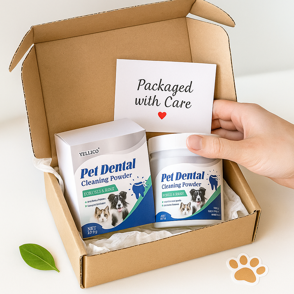 Every MyPetVibe Dental Powder jar is sealed for freshness and delivered in recyclable, eco-friendly packaging to protect your product and the planet.